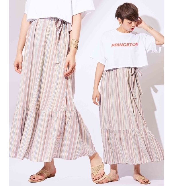 マルチストライプラップスカート
