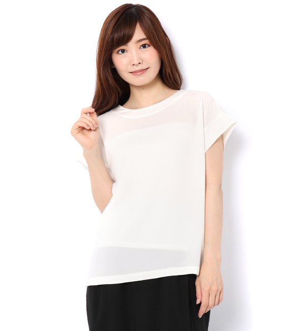【送料無料】 ジョーゼットシリーズのキレイめブラウス。シンプルなTシャツシルエットながら、キレイめな素材感がカジュアルにもオケージョンとしても使いやすい一着。裏面にはサテン生地を使用し滑りが良く、優しい肌触りが特徴です。 プルミエ アロンディスモン/1er Arrondissement トップス|シャツ・ブラウス