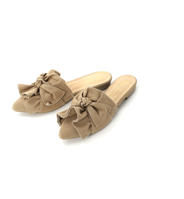 【3000円(税込)以上で送料無料】 大きなデニムリボンがポイントのフラットサンダル。先端に大きめのフリルが広がるため、カジュアルにもガーリーなスタイルにも相性抜群です。これからのシーズンに活躍すること間違いなしの一足です。フラットなローヒールなのでデイリー使いに重宝できます。 マルシェ ド クリアインプレッション/MARCHE de CLEAR IMPRESSION CLEAR IMPRESSION|シューズ|サンダル