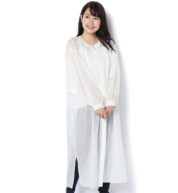 【送料無料】 涼しげで優しい風合いの薄手素材のガウンワンピースです。長めの丈と透け感がトレンドライクな大人の女性のを演出。上半身と腕にはタックが入り、デコルテラインを際立たせます。コーディネートもしやすく、流行りのレイヤードを楽しめます。ボタンを開けて羽織としても活躍する優れた1枚。 シーナリー/SHENERY ワンピース|ワンピース