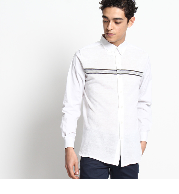 【送料無料】 前身頃をニットで切り替えた異素材感が新鮮なカジュアルシャツです。ニット部分の配色ラインでシャープな表情をつけたデザイン。ベースは程よくハリのあるコットンでおつくりしていて、ボタンダウンの衿元できちんと感を意識しました。モデル情報:身長186cm B87W73H93 着用サイズ:02(M)店舗へのお問い合わせ商品番号:F59-84318主に春に着用いただける商品です。 中国製 デッサン/Dessin Dessin|トップス|シャツ・ブラウス