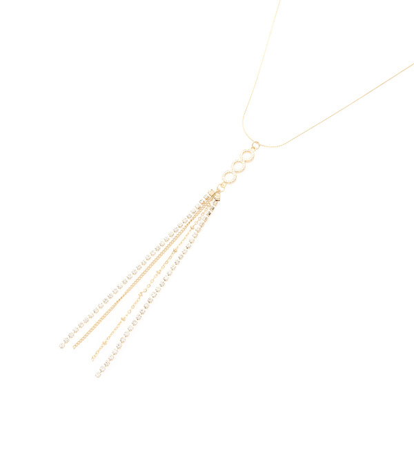【送料無料】 3つ連なったキラキラのビジューリングが印象的なネックレス。リングの下にあしらわれたタッセルがさらさらと動き、視線を集めるポイントになっています。オフィススタイリングにはもちろん、ドレスアップしたスタイリングにもおすすめです。店舗へのお問い合わせ商品番号:187-04215 韓国製 クード シャンス/COUP DE CHANCE COUP DE CHANCE|アクセサリー ・ヘアアクセサリー|ネックレス